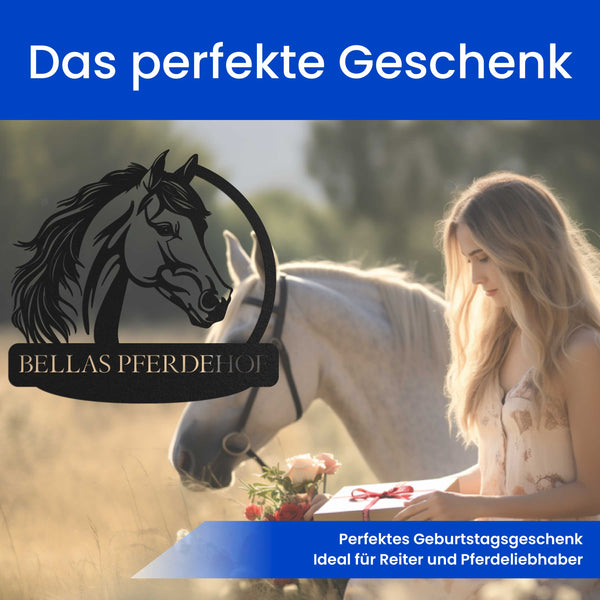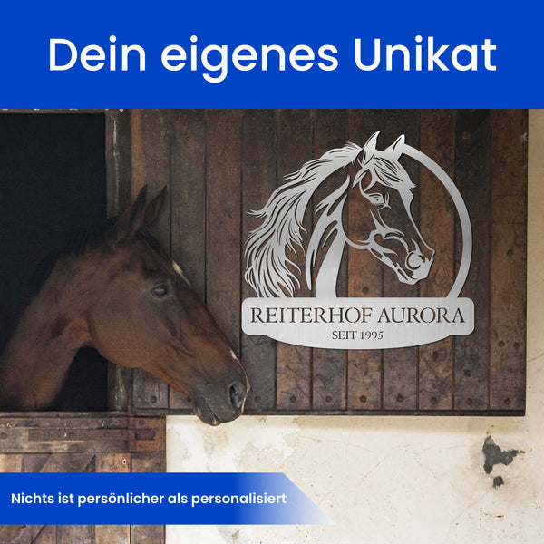 Dank der robusten Verarbeitung bleibt das Schild dauerhaft geschützt und rostfrei, egal ob im Innen- oder Außenbereich – das perfekte Geschenk für Pferdeliebhaber, Reiter oder als besondere Dekoration für Gestüte und Reitanlagen.