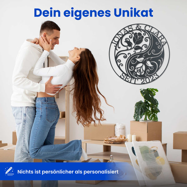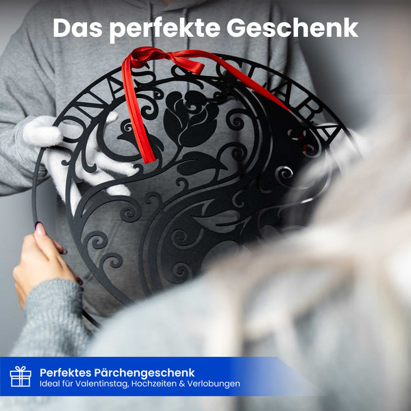 Dank der robusten Verarbeitung bleibt das Schild dauerhaft geschützt und rostfrei, besonders in pulverbeschichteten Farben – eine perfekte Geschenkidee für Familien, Paare oder als Andenken für besondere Anlässe.